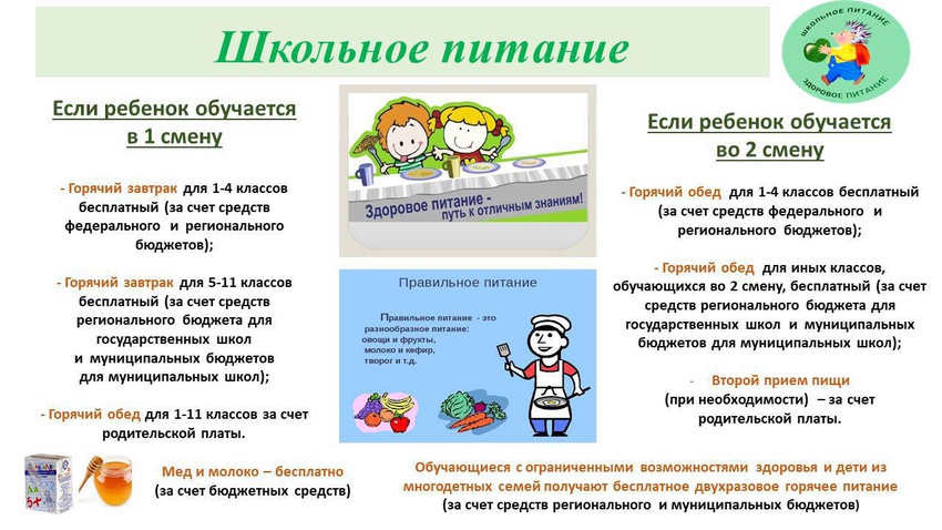 Для организации питания в общеобразовательных учреждениях разработано и согласовано с управлением Роспотребнадзора десятидневное меню с учётом возрастных особенностей детей. В нём соблюдены требования по массе порций, содержанию белков, жиров, углеводов и энергетической ценности. В меню дополнительно включены свежие фрукты и овощи, стало больше блюд из мяса и рыбы, яиц, творога.
